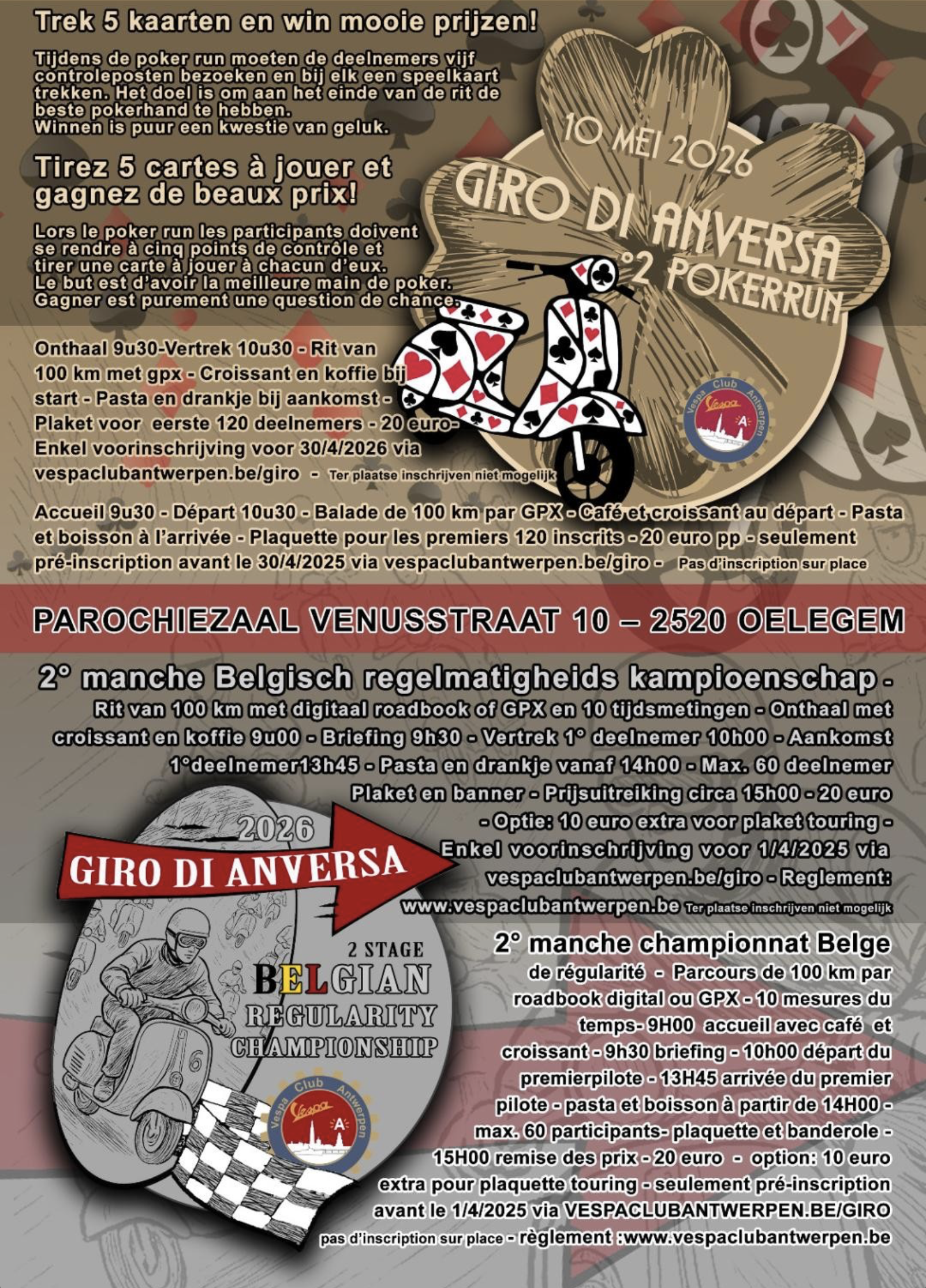 Op de poster hieronder vind je alle praktische info en aandachtspunten zodat ook jij klaar bent om mee te cruisen in echte Vespa-stijl!