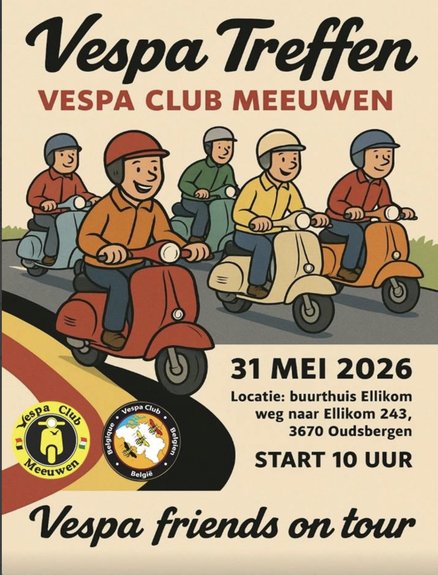 Een vaste waarde op de kalender, eentje die smaakt naar meer, ruikt naar benzine en klinkt als gezellig getokkel van Vespa’s onderweg. Dus helm op, sleutel om en mee op pad, want sommige ritten… die laat ge simpelweg niet liggen.